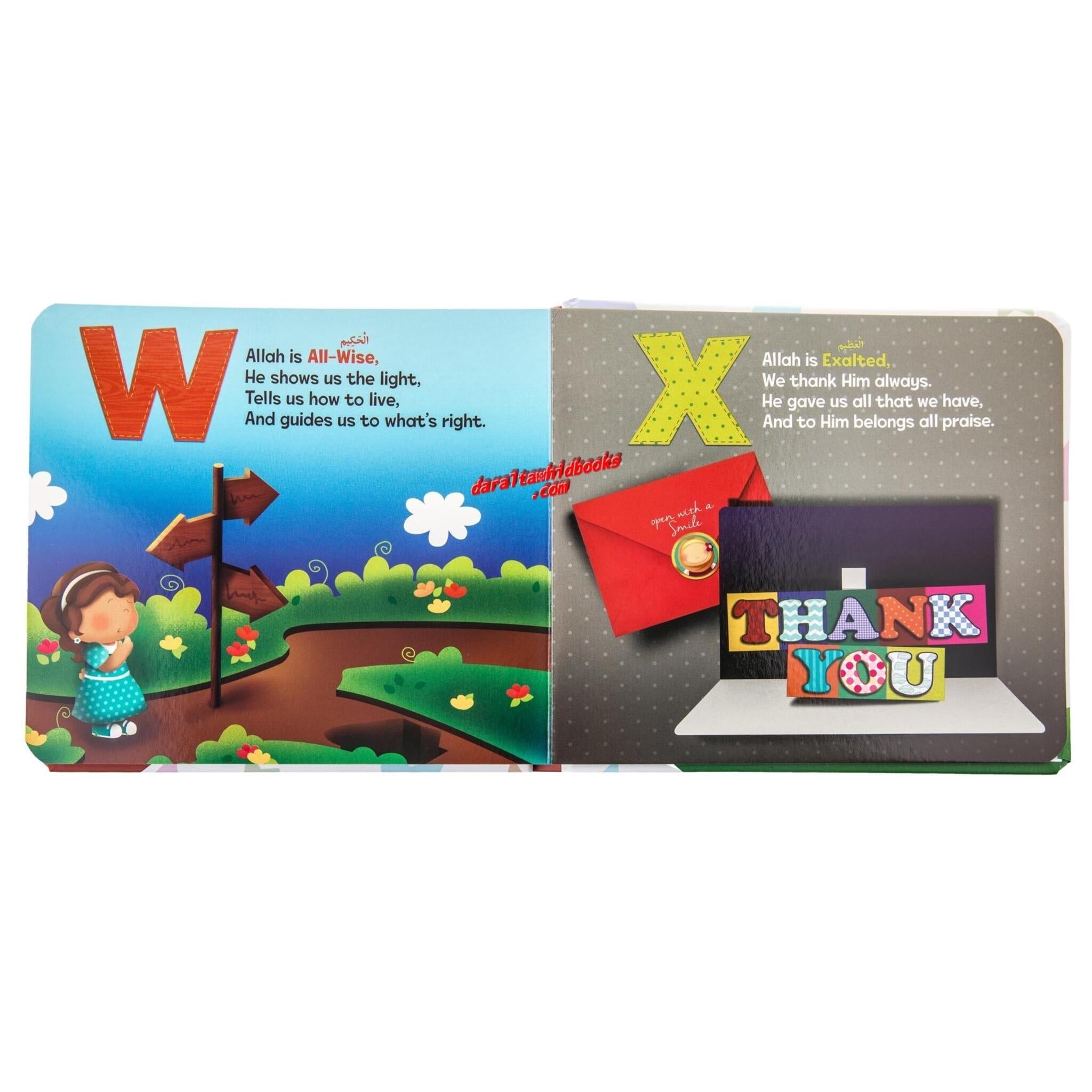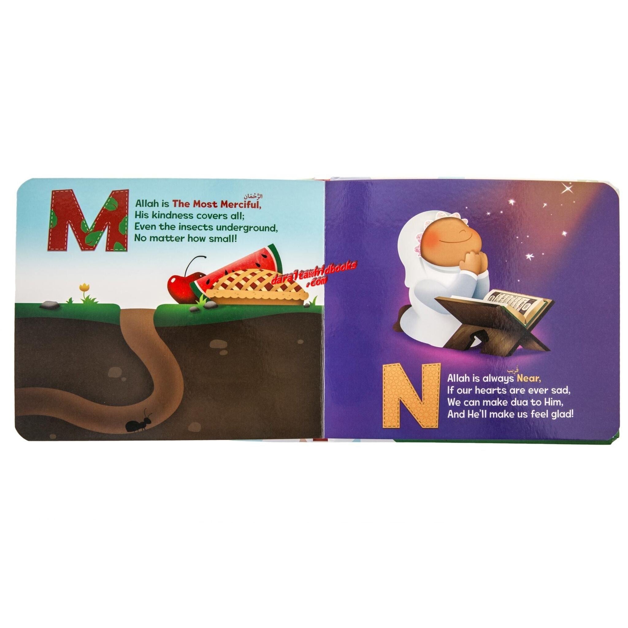 Each letter of the alphabet is associated with one of Allah's lovely names and traits in this book. These are described in simple and loving rhymes. These rhymes will be a hit with children. The book is tough and solid, so it will not be easily destroyed even if young hands tug and play with it. There are 26 pages in the book, so there will be plenty of enjoyable moments to share with your youngster.