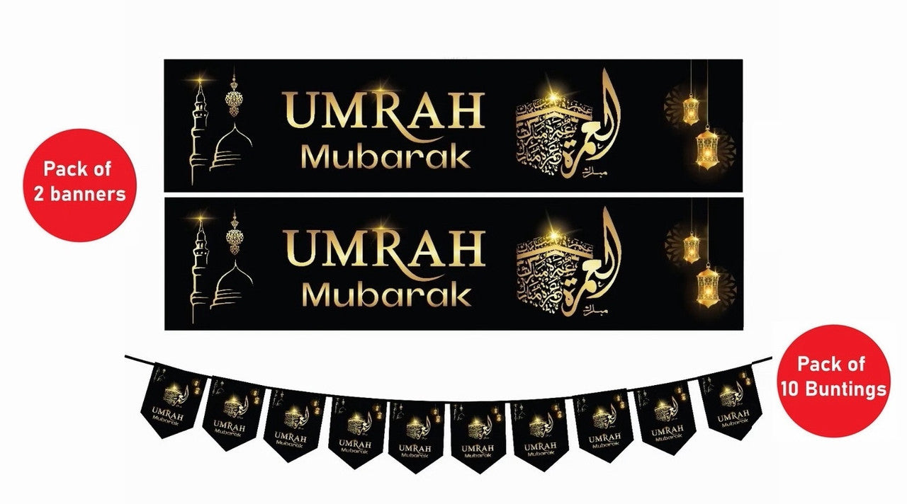 Umrah Mubarak Set Banner and Bunting decorative wall hanging