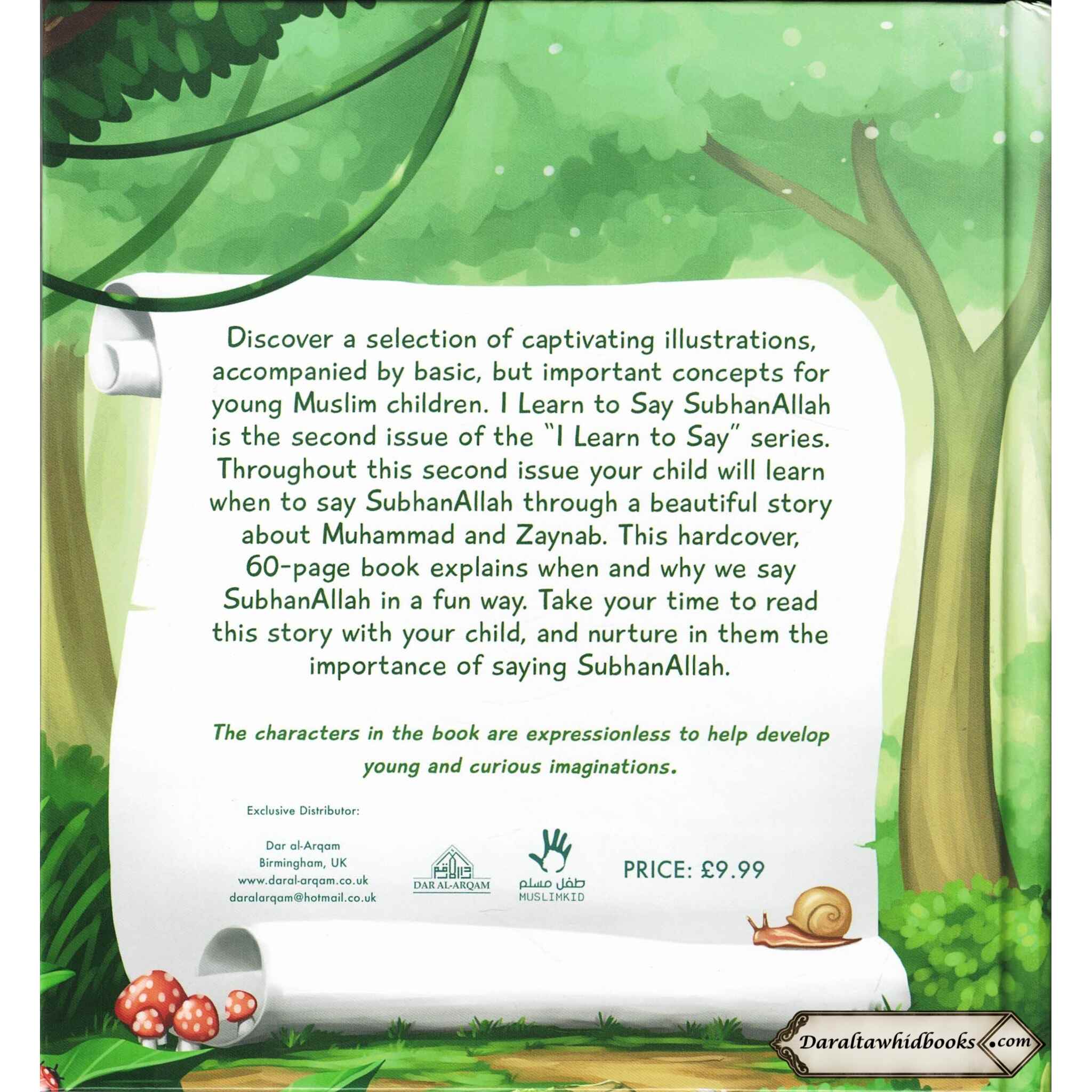 Learn about a collection of fascinating illustrations that are complemented by straightforward but crucial ideas for young Muslim children. The second book in the "I Learn to Say" series is titled "I Learn to Say SubhanAllah". In this book, Muhammad and Zaynab's entertaining story teaches your youngster when to say SubhanAllah. This 60-page hardcover book outlines the amusing justifications for shouting SubhanAllah. Spend some time reading this tale to your child while explaining the importance of reciting SubhanAllah. The lack of facial expressions on the characters in the book fosters the growth of youthful, inquisitive imaginations.