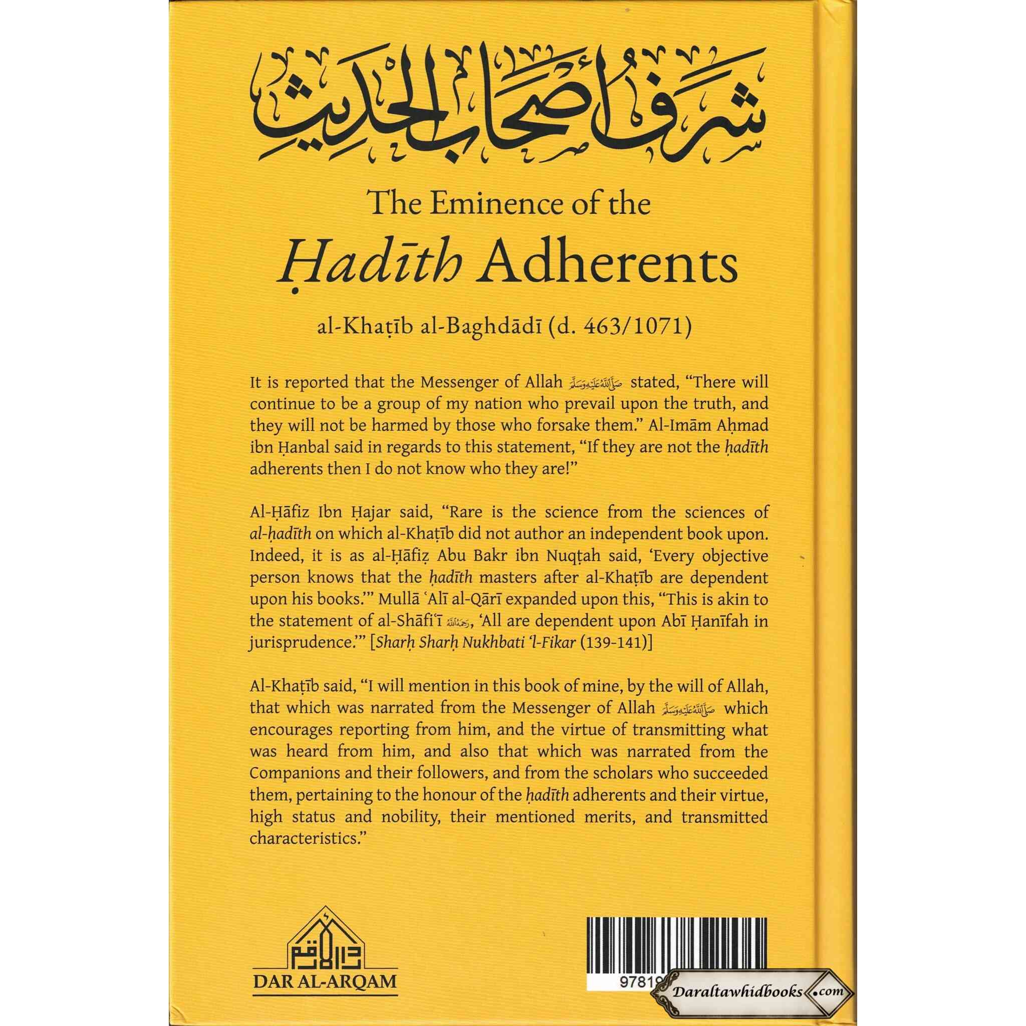 "The Eminence of Hadith Adherents" is a work produced in the 10th century by Al-Khatib Al-Baghdadi, a notable Islamic scholar and historian. The book is an important work in Islamic literature because it emphasizes the necessity of adhering to and following the Hadith, which are the sayings, actions, and approvals of Prophet Muhammad (peace be upon him).