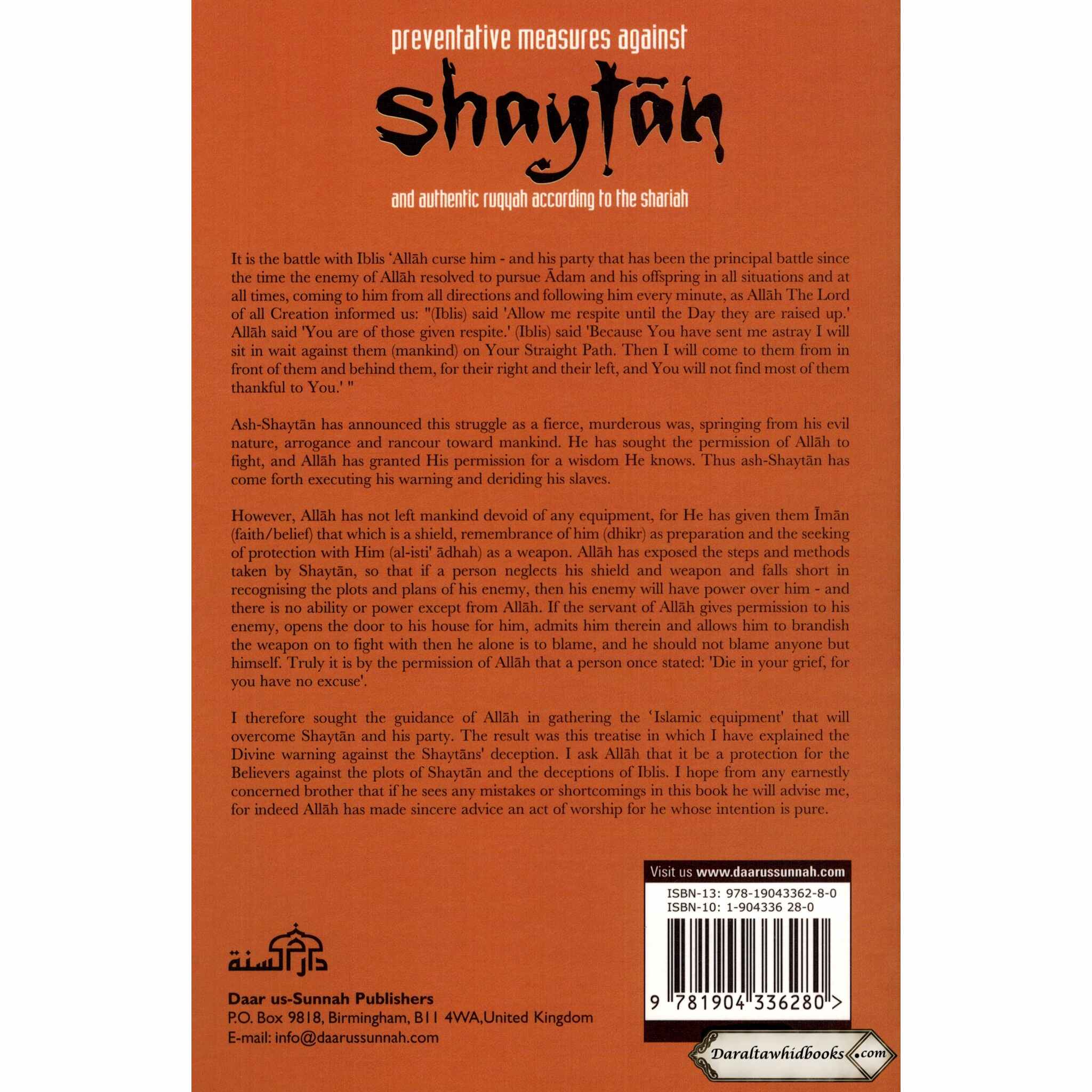 Mustafa Ibn Al-Adawi's "Preventative Measures Against Shaytan and Authentic Ruqyah According to Shariah" is a thorough guide that addresses the spiritual problems offered by Shaytan (Satan) and provides true Islamic treatments, particularly through the practice of Ruqyah. In this informative work, the author provides practical insights and preventative steps based on Islamic teachings to protect oneself against Shaytan's influences.