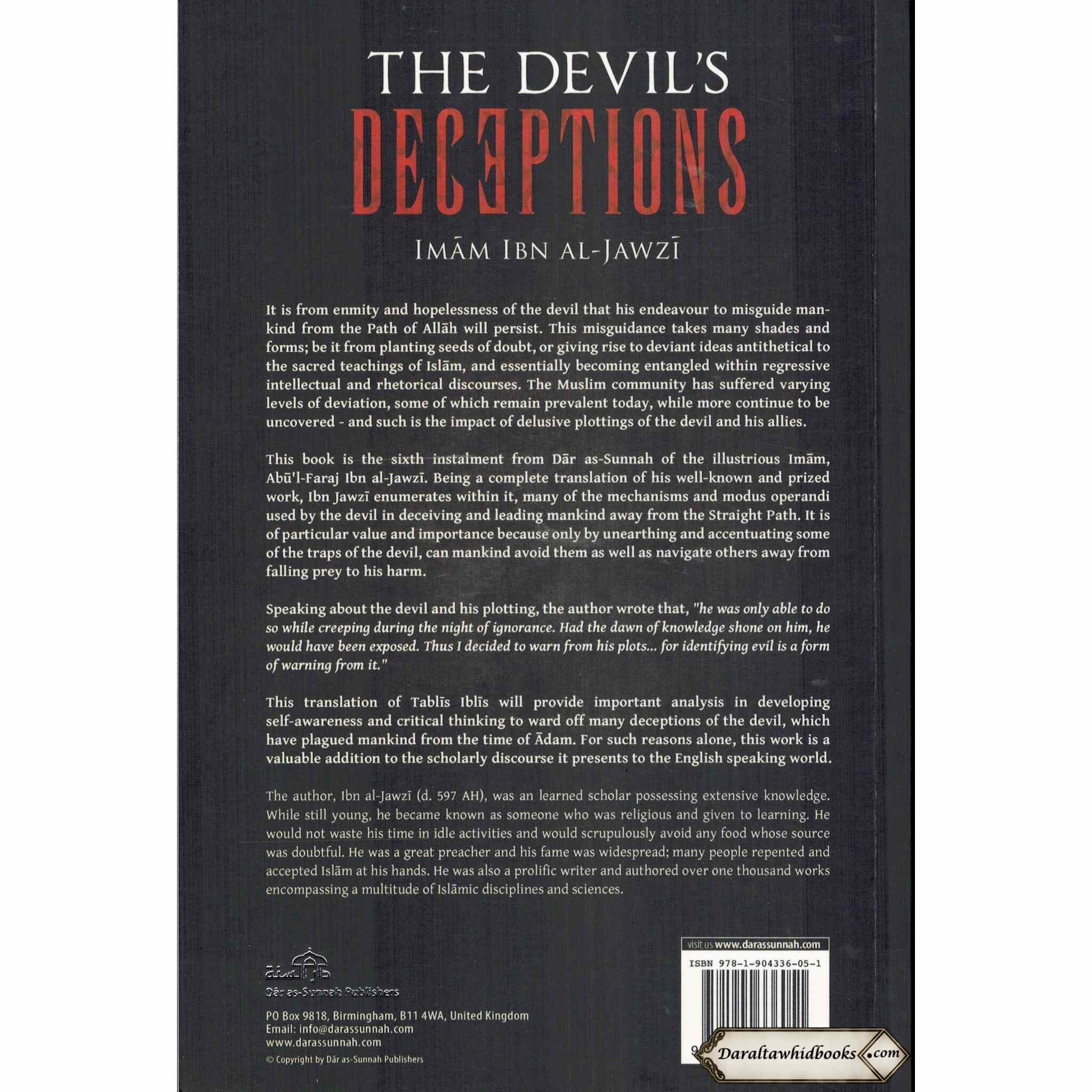 "The Devil's Deception," originally named "Talbis Iblis,," is an intriguing and interesting composition composed by the incomparable Islamic researcher Imam Ibn Al-Jawzi that presents a nitty gritty evaluation of Satan's strategies for misleading and enticing people. This well known book of Islamic writing gives huge experiences into Satan's shrewd and misleading procedures for driving individuals from the way of uprightness.