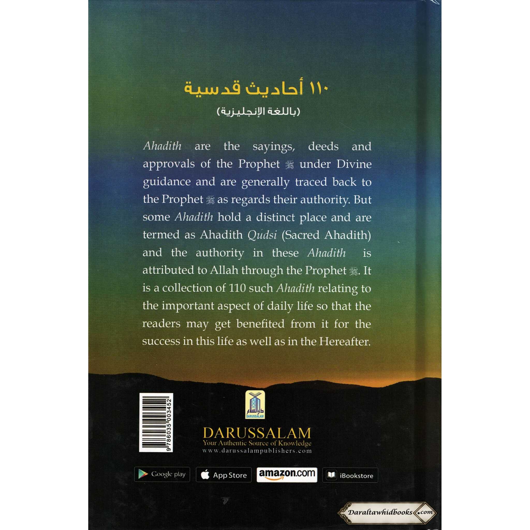 "110 Hadith Qudsi" is a collection of 110 of the Prophet Muhammad's most noteworthy sayings. They are unique in that they include messages from Allah as revealed by the Prophet. These sayings provide Muslims with instruction on how to conduct their life and follow their faith.