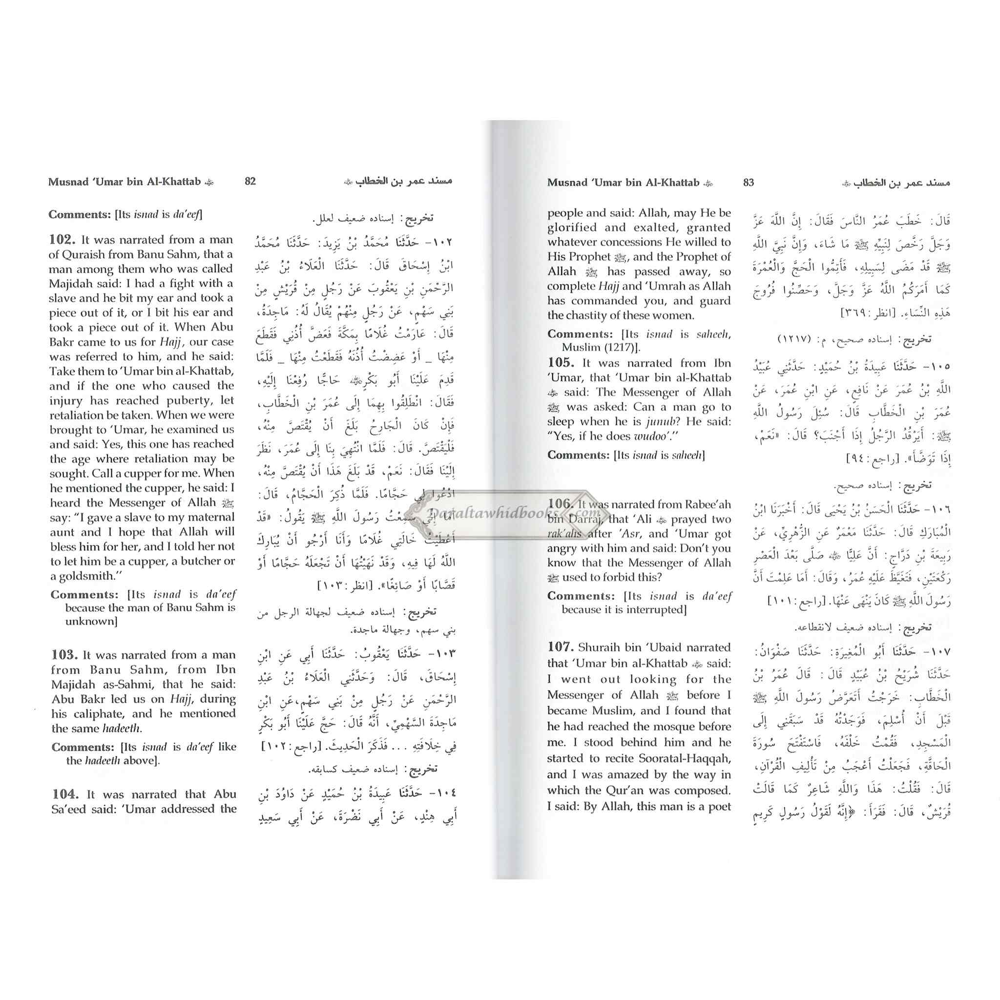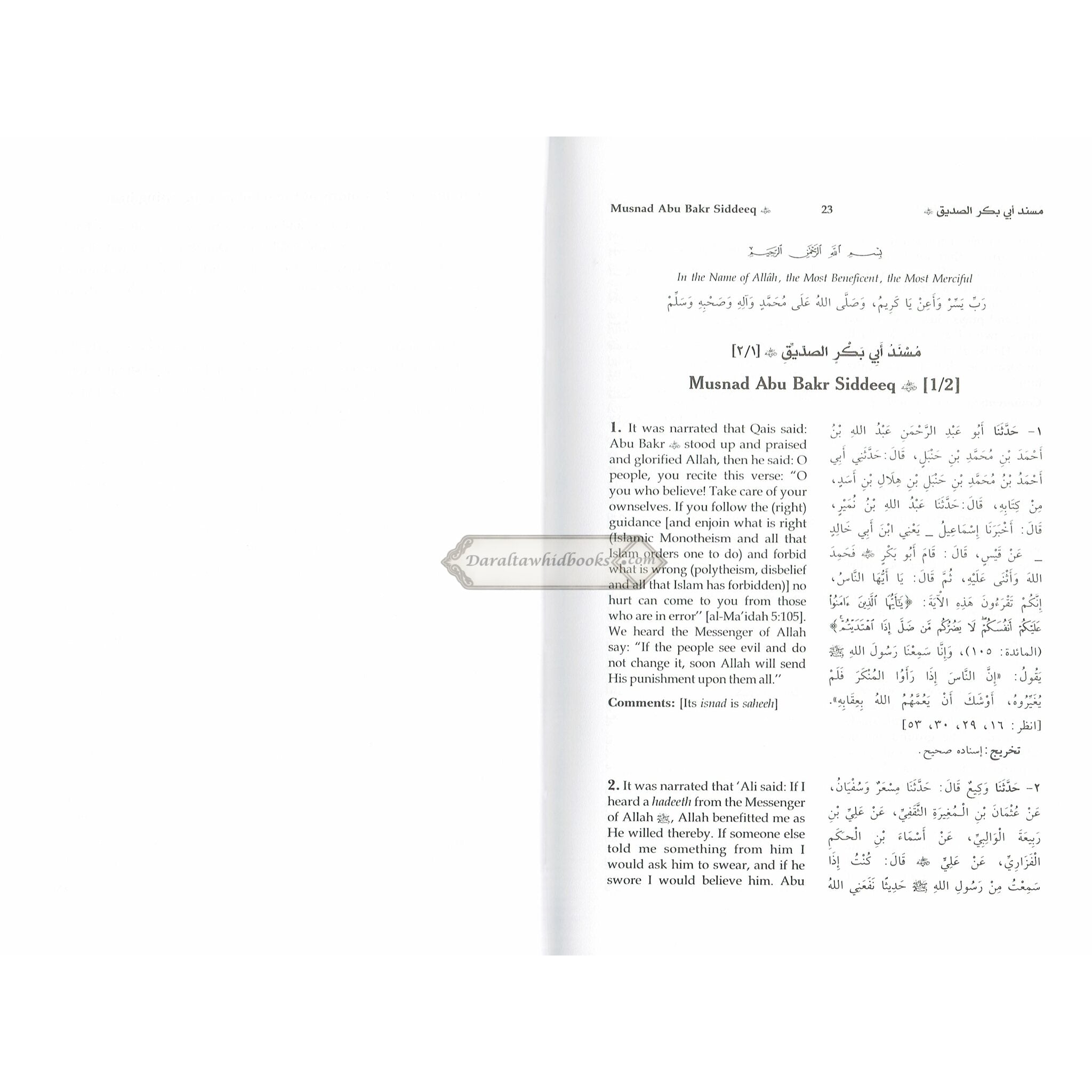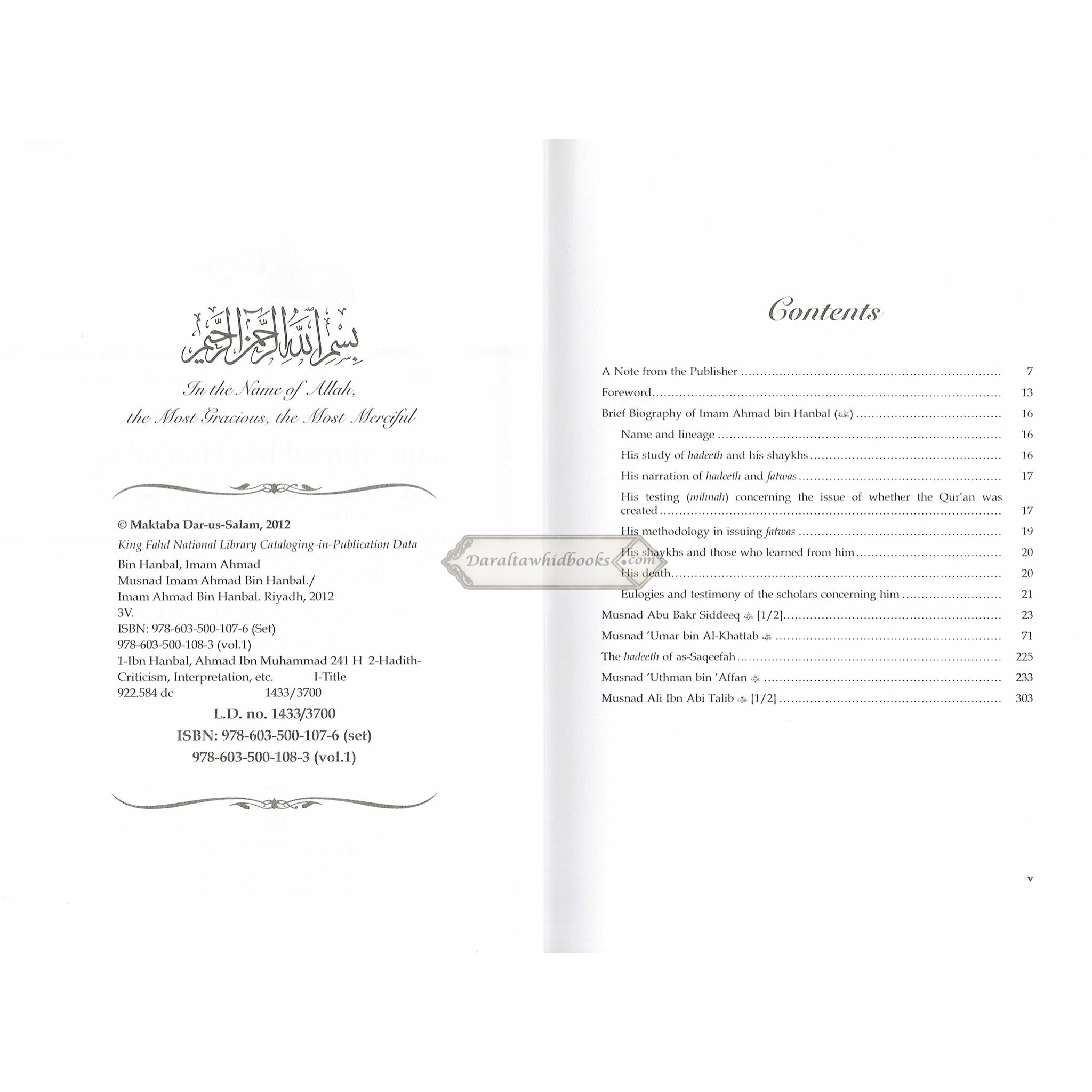 The Musnad of Imam Ahmad bin Hanbal is extremely important in Islamic studies since it contains over 28,000 hadiths related by over 3,000 Companions of the Prophet Muhammad (peace be upon him). This vast collection is organized into six volumes, with each volume devoted to hadiths related by distinct Companions. Volume 1 of the Musnad concentrates on the hadiths delivered by numerous famous Companions, including Abu Hurairah, Abu Sa'id al-Khudri, Jabir ibn Abdullah, Anas ibn Malik, Abdullah ibn Umar, Abdullah ibn Abbas, Ubayy ibn Ka'b, Uthman ibn Affan, and Ali ibn Abi Talib. The English translation of Musnad Vol. 1 is now being worked on by a team of scholars and translators overseen by Sheikh Muhammad Nasiruddin al-Khattab. Darussalam Publishers has agreed to collaborate on the translation project.