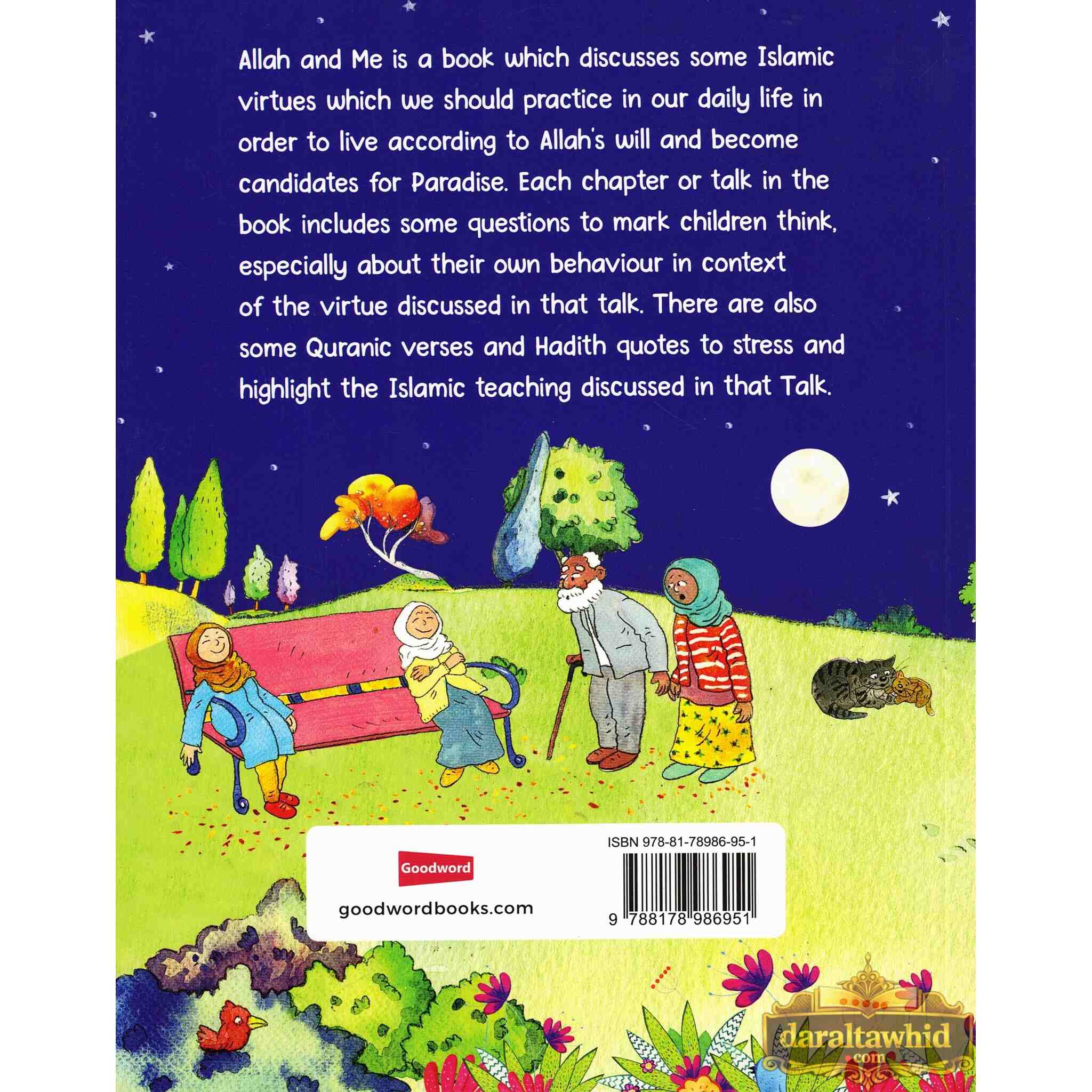 ISBN: 9788178986951 Author: Vinni Rehman Binding: Softcover Pages: 63 Size: 17x24 inches Publication Year: 2012 Language: English Publisher: Goodword Description About This Book: Allah knows what is best for us. Read this book to find out what He wants from us, as well as what He likes and dislikes. Allah and Me is a book that explores various Islamic virtues that we should follow in our daily lives in order to live in accordance with Allah's will and qualify for Paradise. Everything a Muslim does is for Allah. Every Little Talk in this book offers some questions to get kids thinking, especially about their own behavior in relation to the virtue being examined. Each Talk concludes with Quranic verses and Hadith excerpts that emphasize and emphasize the Islamic message addressed in that Talk. Conversations Interactions with Allah: Enter the hallowed domain of intimate interactions with Allah. This chapter contains a number of deep insights, petitions, and contemplative moments that highlight the author's own encounters with the Divine. Readers will find comfort and inspiration in the real discussion that serves as the author's relationship with Allah. Faith's Difficulties and victories: Examine the author's journey through faith's difficulties and victories, analyzing how adversity and joy have influenced their perception of Allah's mercy and wisdom. This chapter mixes personal anecdotes and spiritual insights into a sympathetic story that reflects the common experiences of believers confronting life's hardships.
