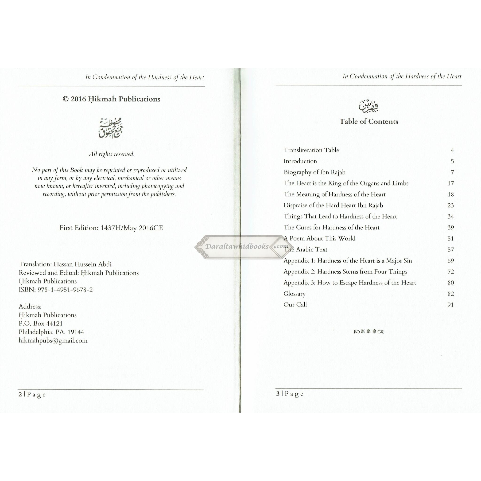 Al-Haafidh ibn Rajab al-Hanbalee's "A Treatise in Condemnation of The Hardness of Heart" is a profound and spiritually enlightening work that delves into the spiritual ailment of a hardened heart, offering valuable insights and guidance on how to soften and purify one's heart in the light of Islamic teachings. This timeless essay is a light of knowledge, encouraging readers to reflect, seek spiritual progress, and reconnect with Allah.