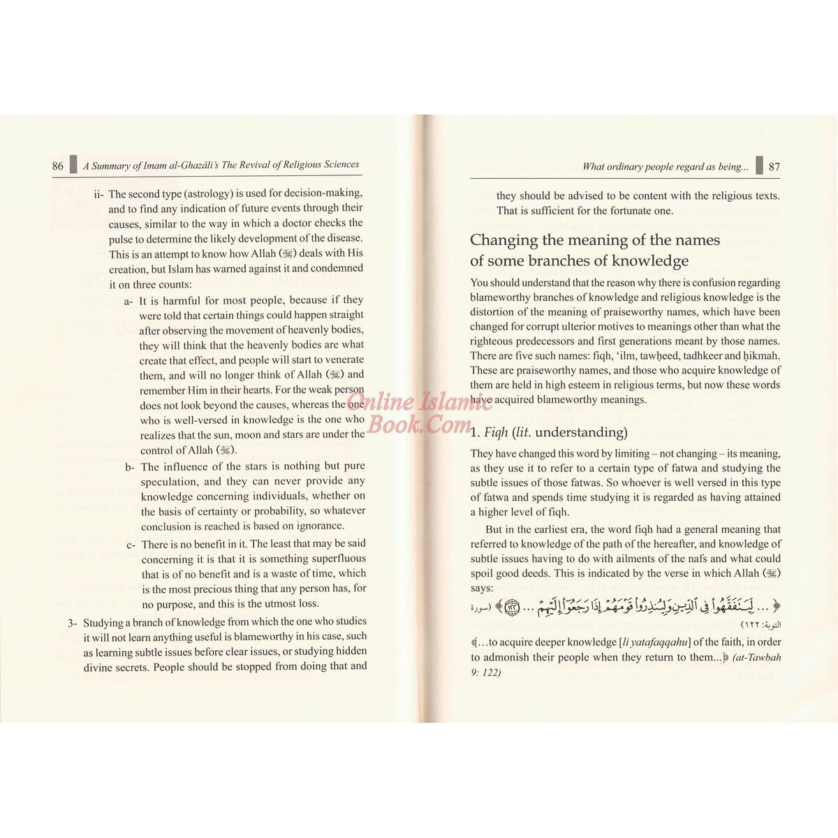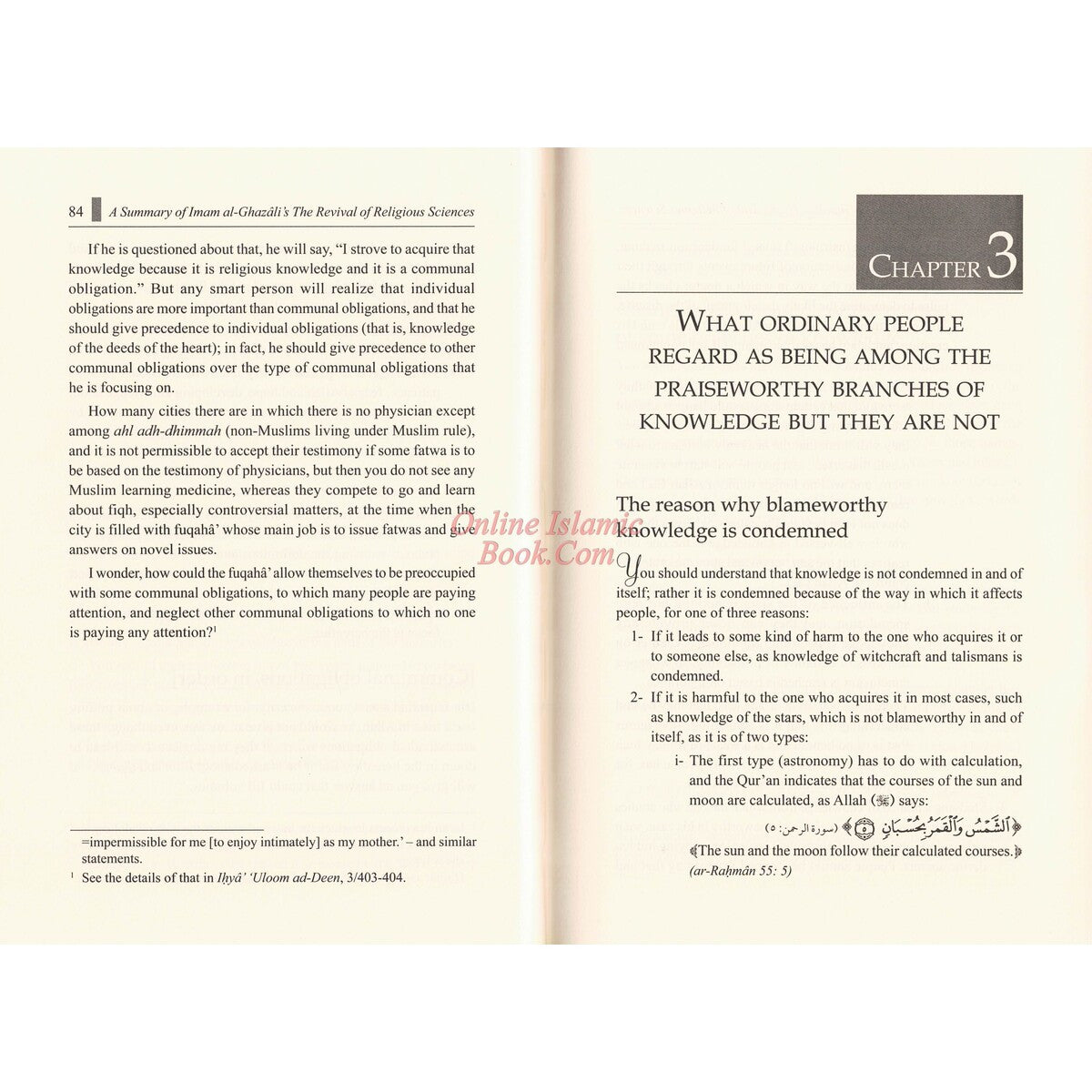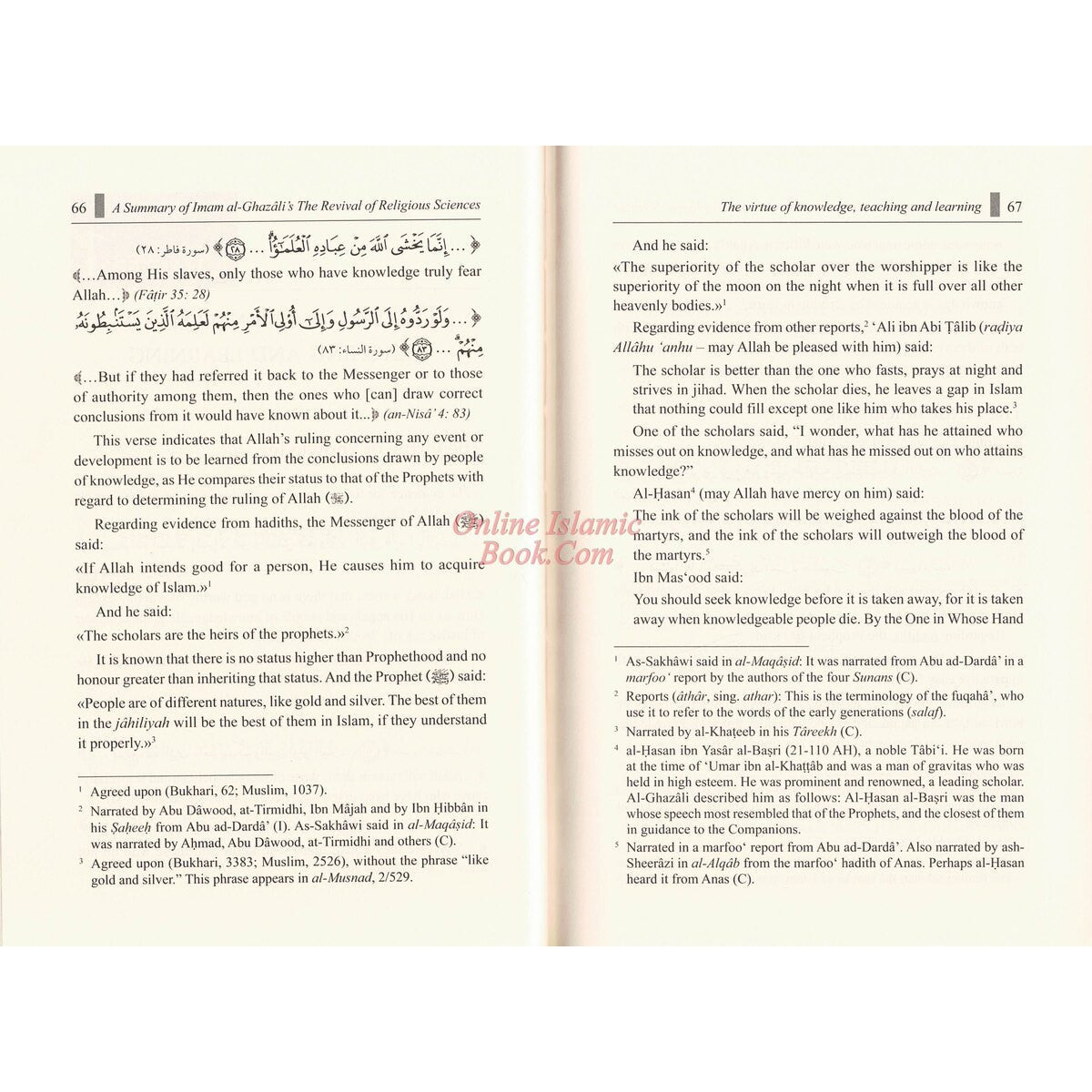 The value of the ''Revival of Religious Sciences'' written by Imam al-Ghazâlî is outstanding, it is a chance to plunge into the depth of his work and reveal its essence. This four volume work remains one of the most valuable contributions to the Islamic tradition, and one of the most detailed studies of spirituality, ethics and practice. Al-Ghazâlî's Book provides readers with a set of recommendations on how they could return to their faith and knowledge and how they could develop as better Muslims and individuals in both, the personal and the collective sense.