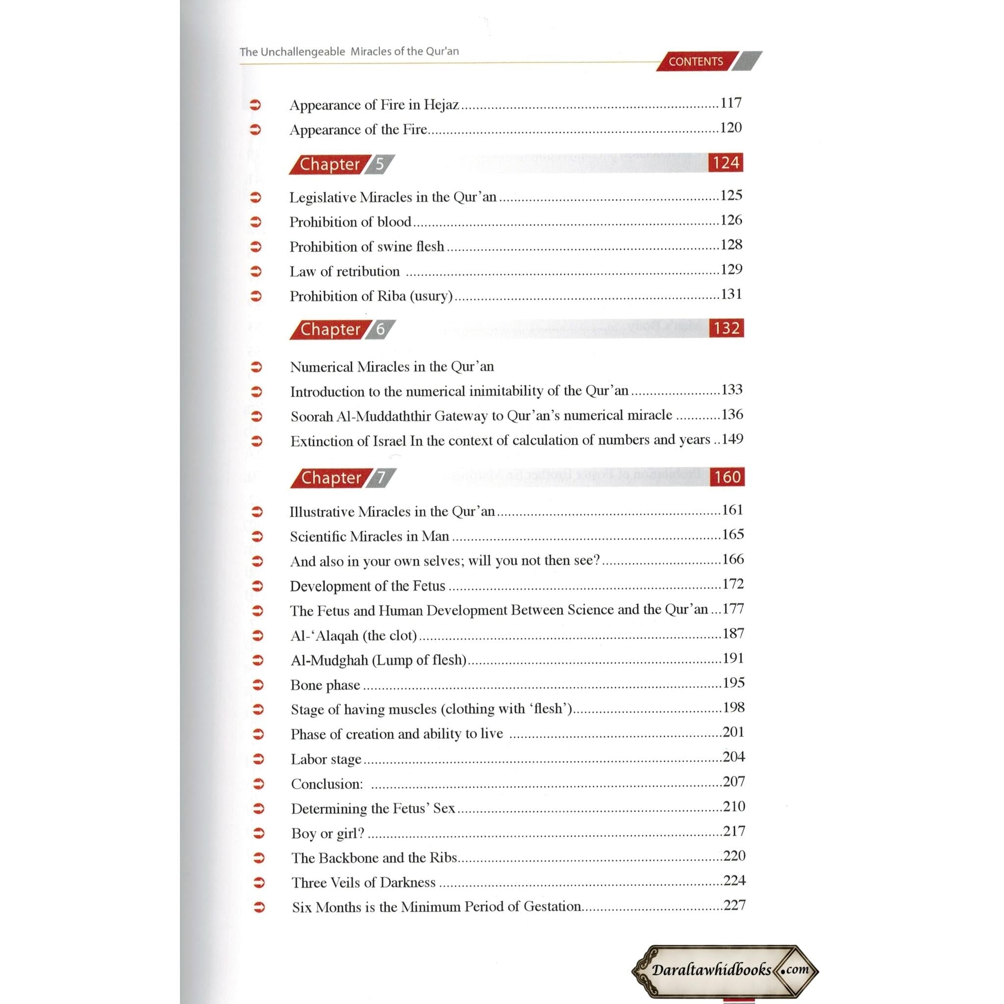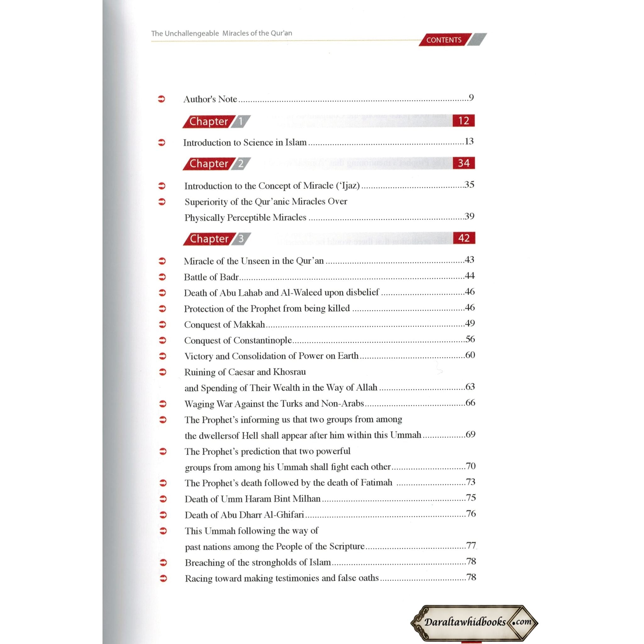 "The Unchallengeable Miracles of the Quran" goes into the scientific miracles hidden in the Quranic texts. The author investigates situations in which the Quran provides insights into scientific processes that contemporary science only uncovered decades later. This meeting of scientific discoveries and Quranic revelations attests to the divine wisdom included in the holy text's foresight.