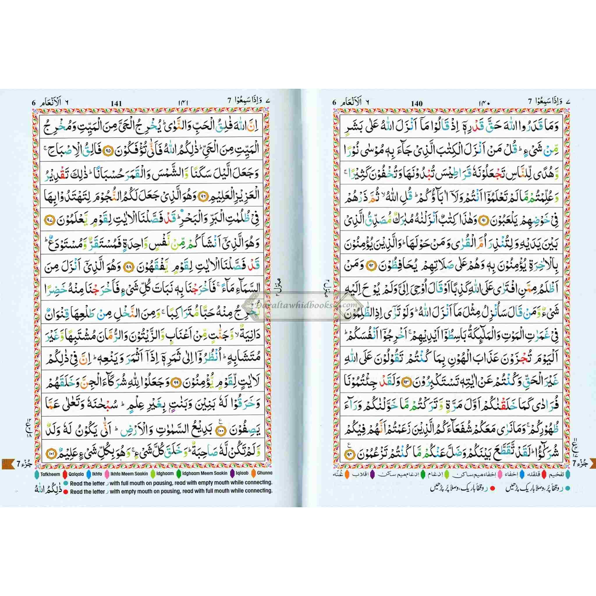 The Holy Quran Colour Coded Tajweed Rules in English and Urdu (Ref 123-CC) 15 Lines Quran (Medium)