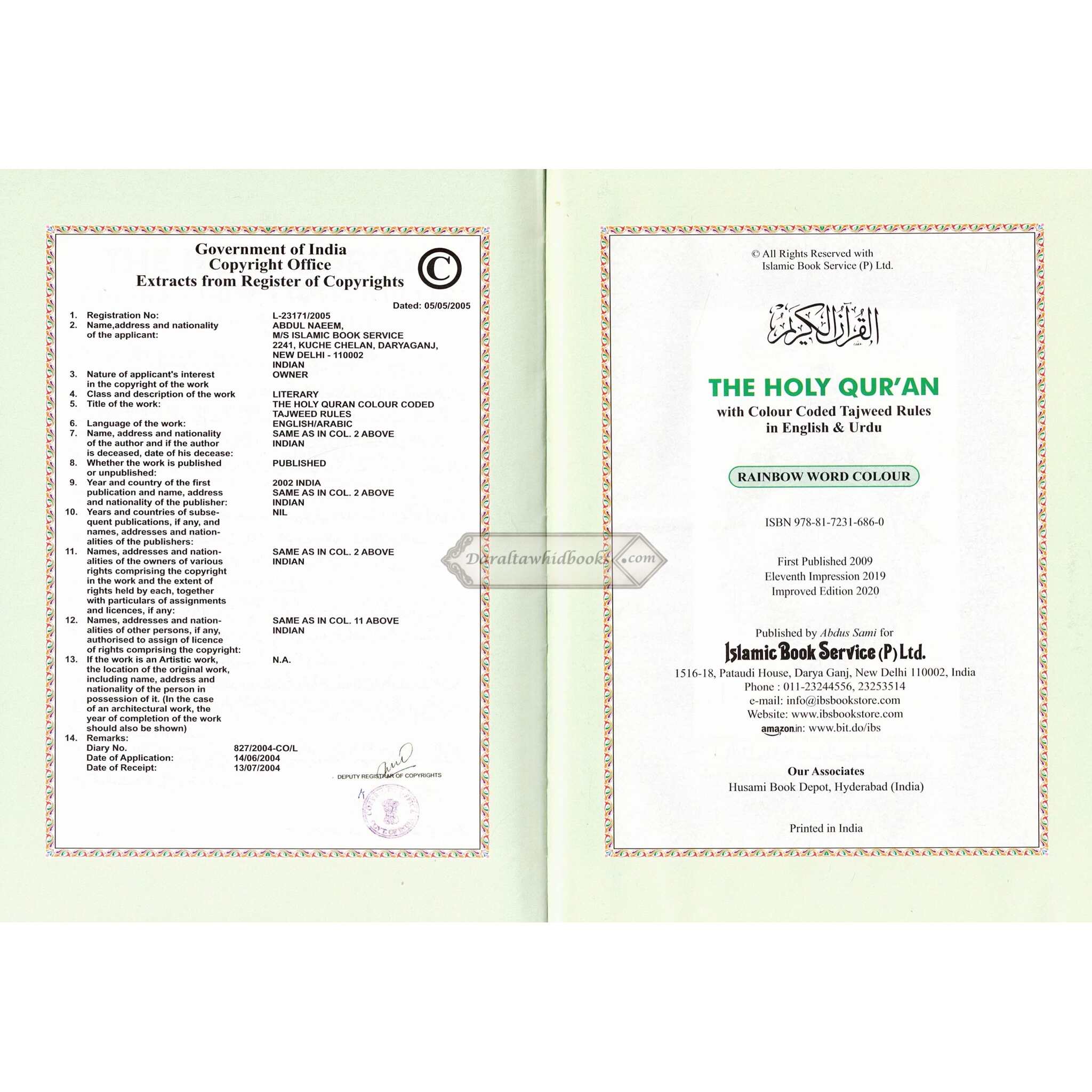 Tajweed Rules Expalined in English and Urdu LanguageHoly Quran No.123-CC Flexi with Slip Case