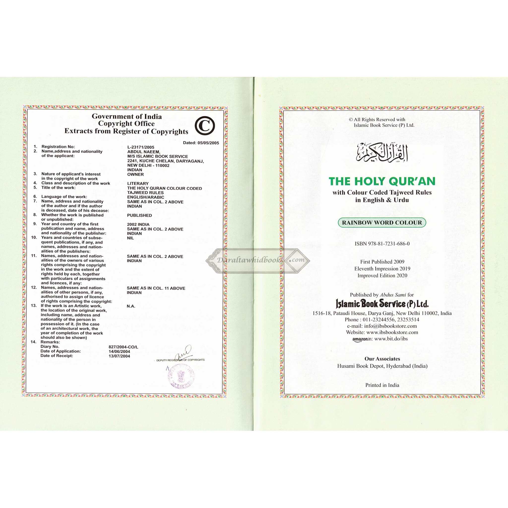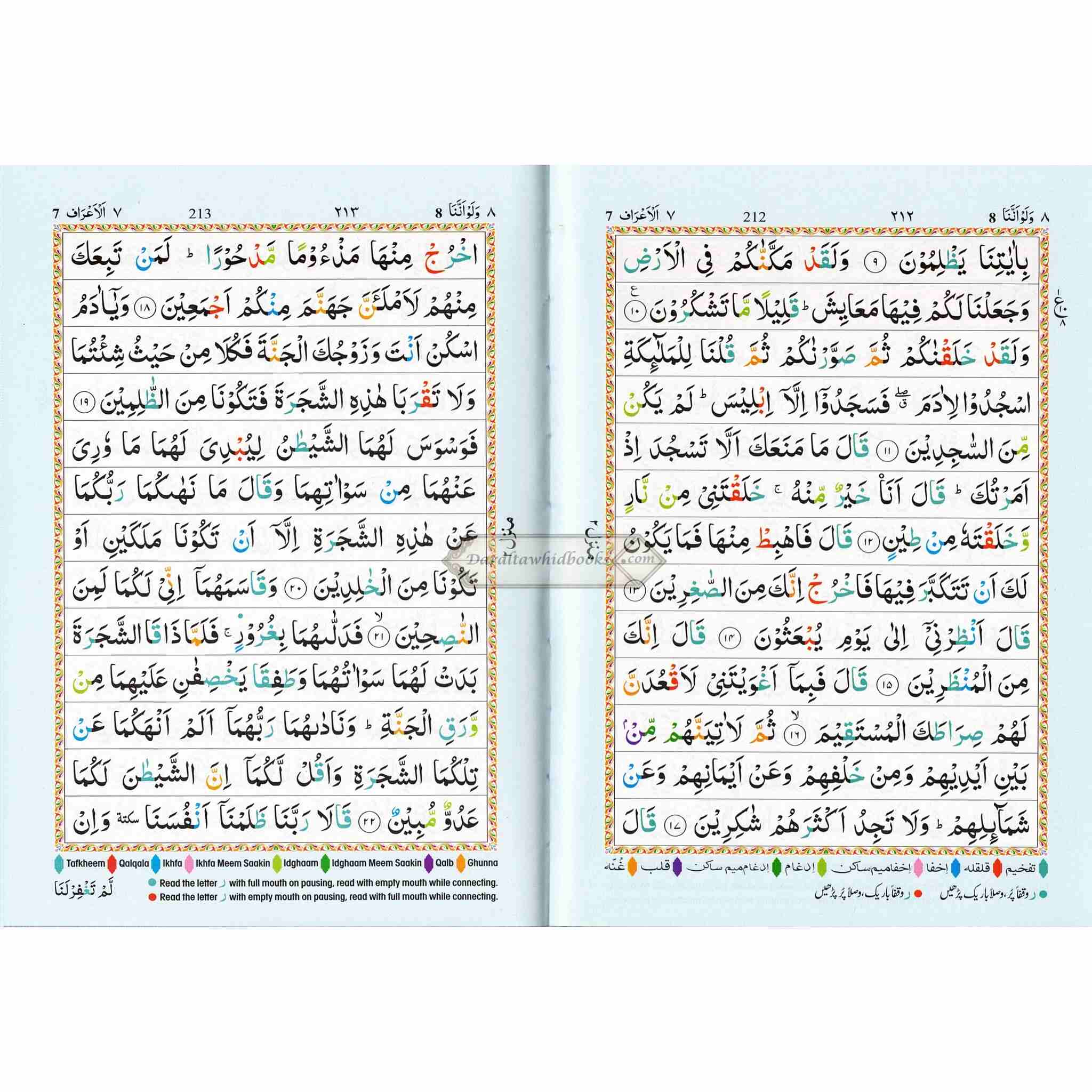 The Holy Quran Colour Coded Tajweed Rules with Colour Coded Manzils (Medium Size) With Case ,Ref 23,(13 Lines)