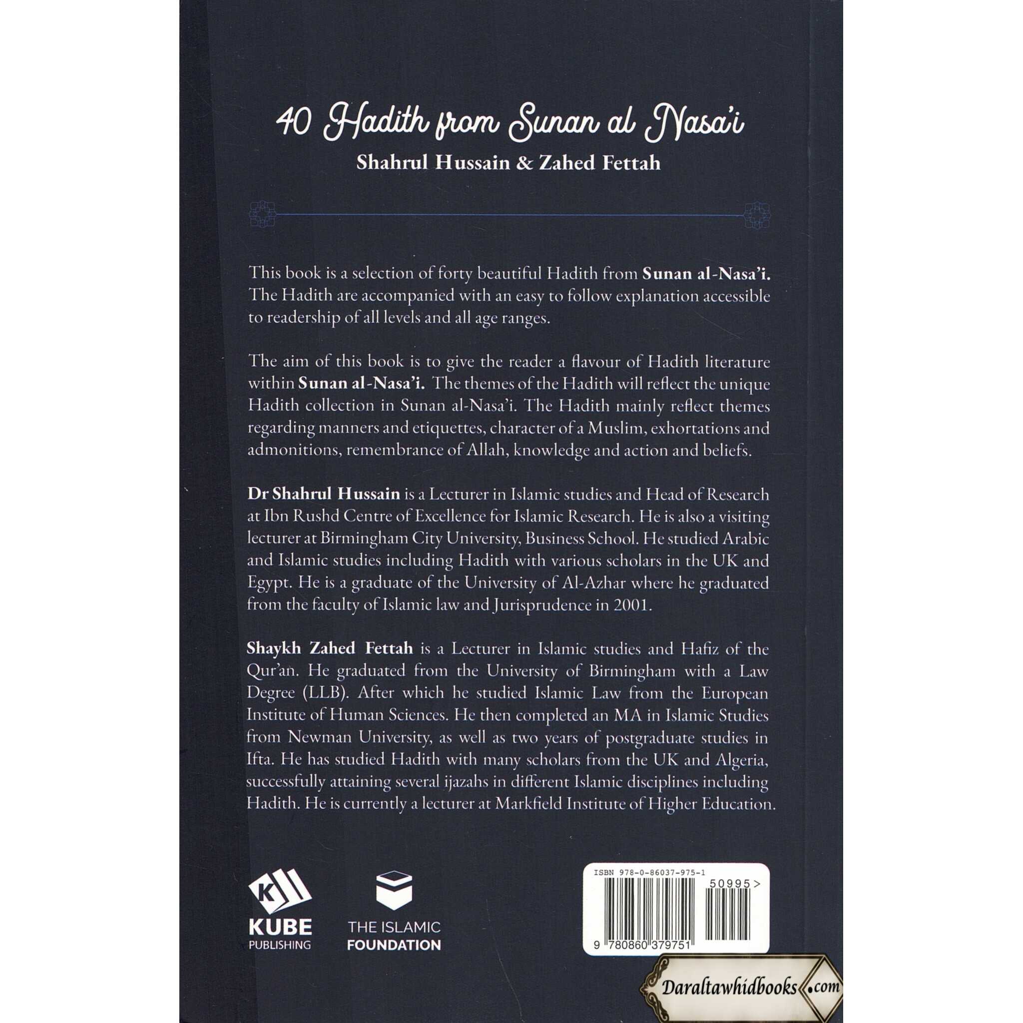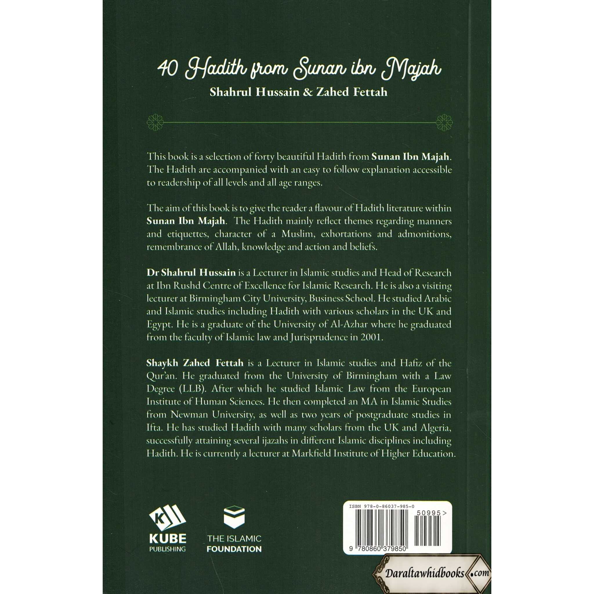 This box set is a selection of six books each covering forty beautiful and most authentic Hadith from six different scholars. The Hadith are accompanied by an easy-to-follow explanation which makes it accessible to readership of all levels and all age ranges. Each volume covers themes regarding manners and etiquettes, the character of a Muslim, exhortations and admonitions, remembrance of Allah, knowledge, and action, and beliefs. The aim of this book is to give the reader a flavor of Hadith literature with the hope it opens the doors for readers to enquire more about Hadith.