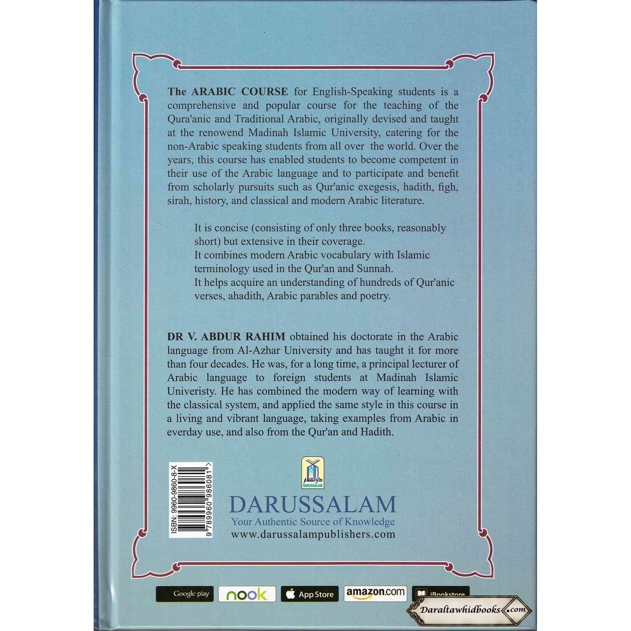This instructional series is widely used in academic institutions, Islamic centers, and by self-learners seeking a disciplined and pragmatic approach to Arabic language mastery. The instructional style of Dr. V. Abdur Rahim stresses understanding and practical application, making it accessible and effective to Arabic learners of all competence levels."