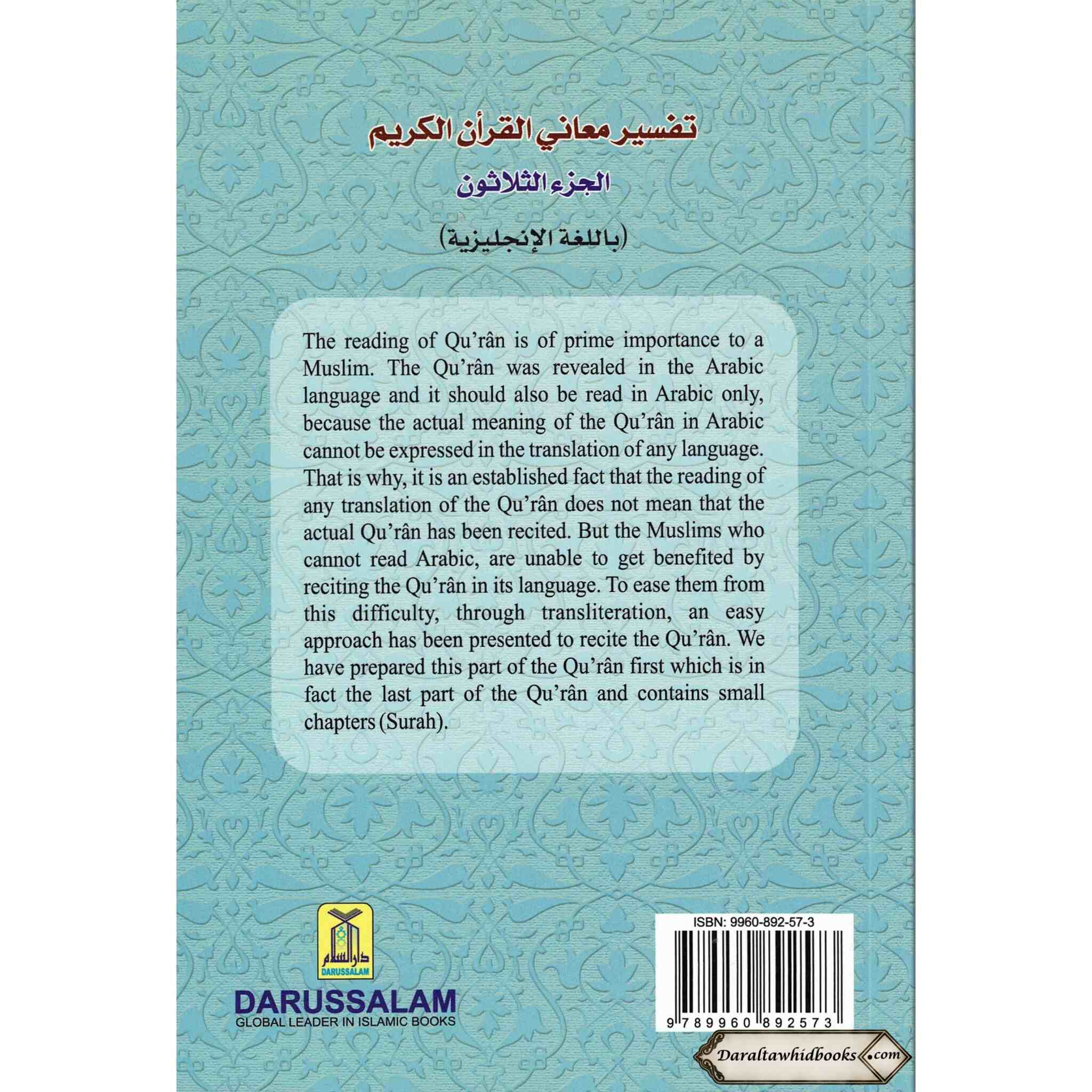 Begin a concentrated and in-depth investigation of the Quran's final portion with "Interpretation of the Meanings of the Noble Quran in The English Language With Transliteration (30th Part Only)." This compact yet comprehensive publication, dedicated to the Quran's 30th Juz (Part), provides English readers with an approachable road to grasping the holy messages contained within this concluding segment.