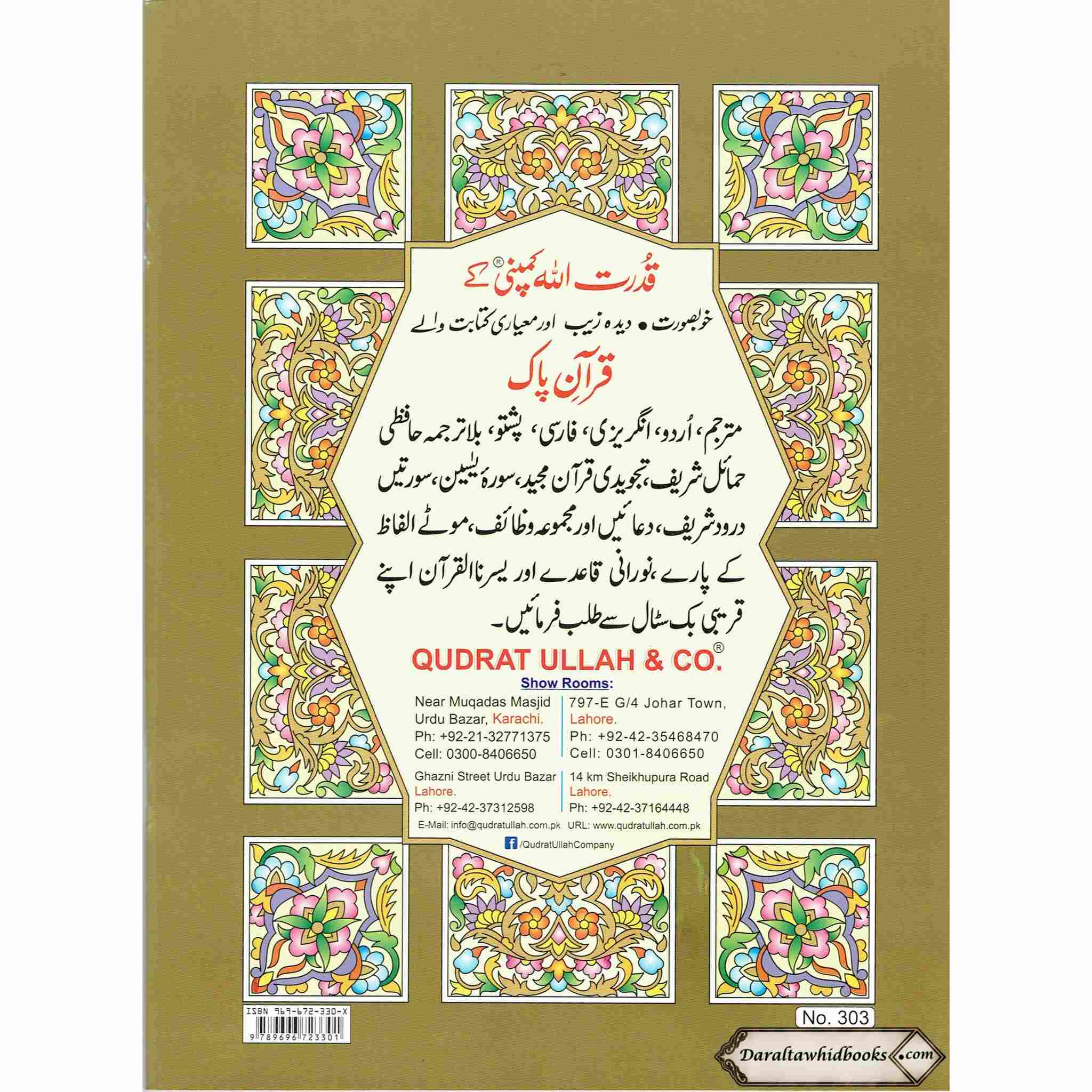 "Panj Surah: Ref 303" refers to a compilation that emphasizes the numerous benefits, rewards, and virtues of reciting five specific Quranic chapters (surahs). Yaseen, Rehman, Waqia, Malik, Muzammil, Fateh, and the four brief chapters known as Char Qul are among these surahs. This collection emphasizes the importance of reciting these specific surahs and describes the blessings linked with each of them. These surahs have unique locations in Islamic tradition, and individuals who recite them are said to get various spiritual gifts and blessings. Believers can develop their relationship with the Quran and find inspiration from its teachings by thinking on the meanings and messages contained throughout these surahs. The compilation's goal is to inspire people to recite these surahs on a daily basis, allowing them to feel the tremendous spiritual advantages they provide.