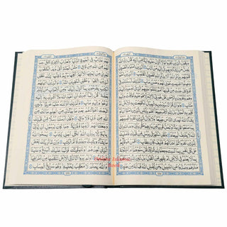 The Quran Arabic Only,16 Lines Pakistani / Indian/ Persian Script For Huffaz (Size 7.9 x 5.6 Inch) (Ref 7A) White Paper Blue Border,Medium Size