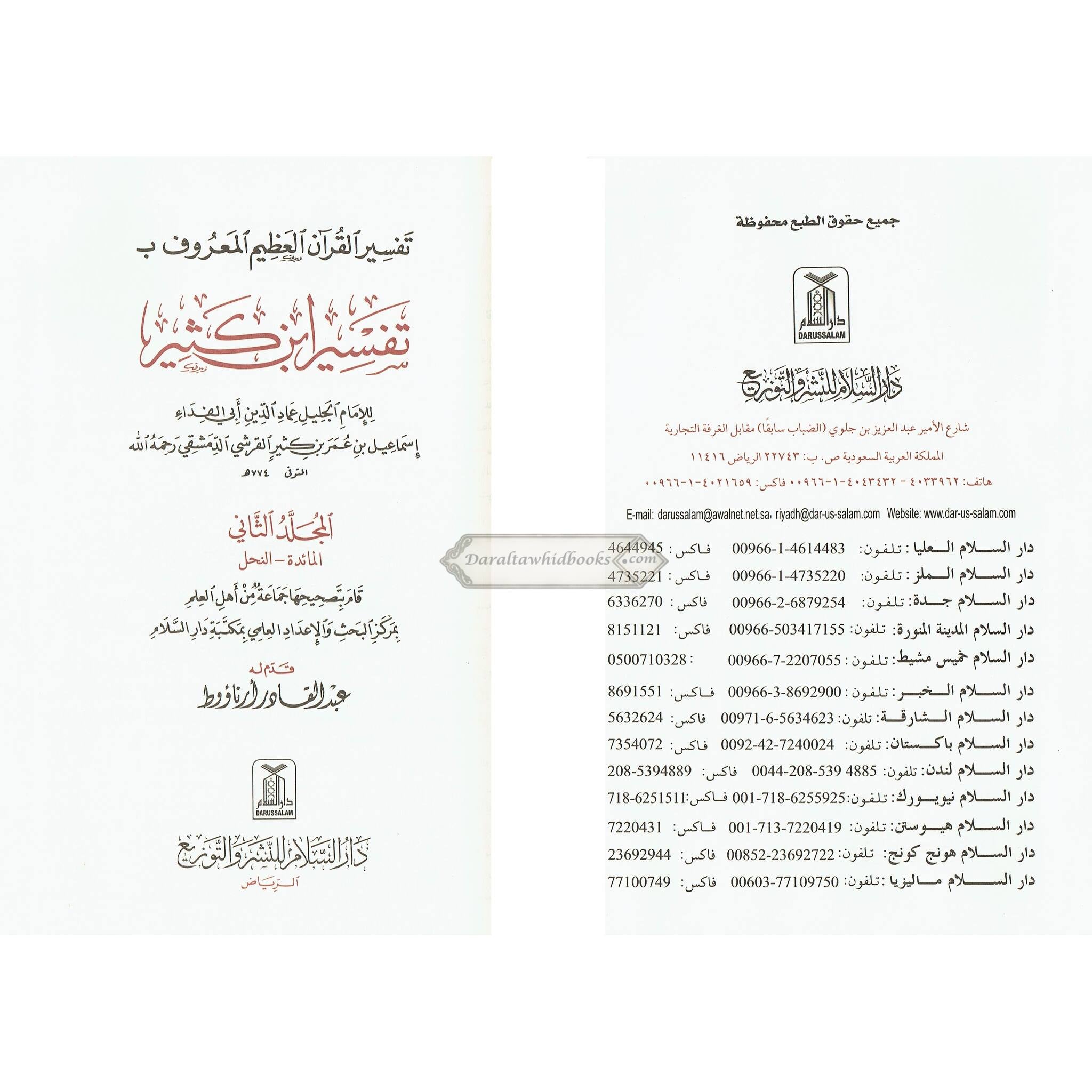 This book is titled Tafsir Ibn Kathir and is known for its general appreciation of scholarly works of the Quran produced by an Islamic scholar Ibn Kathir.; This particular edition is a four-volume collection written in Arabic.Ibn Kathir's Tafsir (exegesis) is highly acclaimed for its comprehensive and precise explanations of Quranic verses. This book depends on various sources such as the Quran, Sunnah instructions and the teaching of Prophet Muhammad PBUH Tafsir of Ibn Kathir provides unique insights into the grammatical, historical, and contextual elements of Quranic verses.