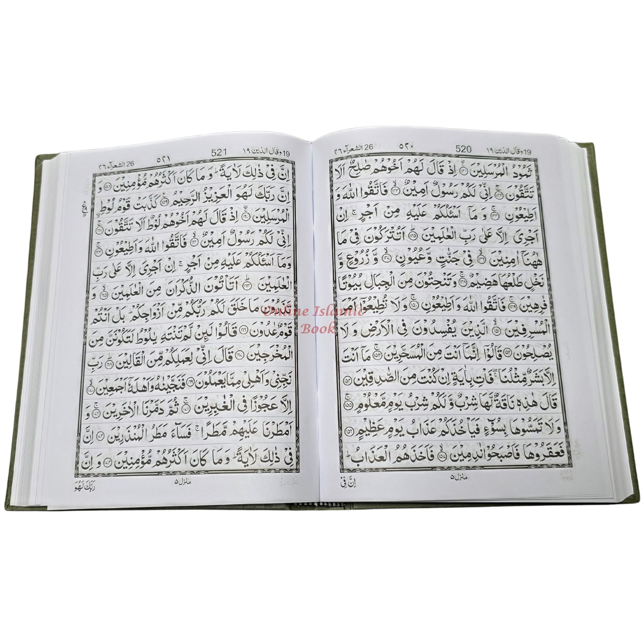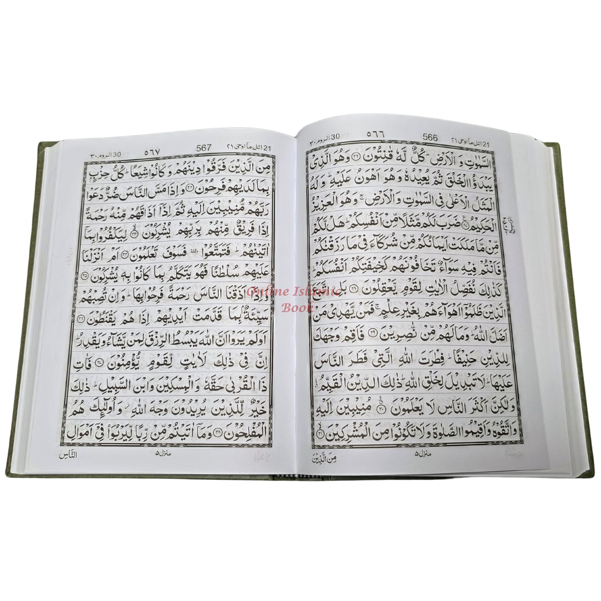 The text is presented in clear Arabic script, making it easy for readers of all ages and backgrounds to appreciate its majestic words. Each page is carefully formatted to aid proper recitation (tilawah) and reflection (tadabbur) upon its verses. The high-resolution print guarantees that every word stands out distinctly, honoring the revelation that guides mankind.
