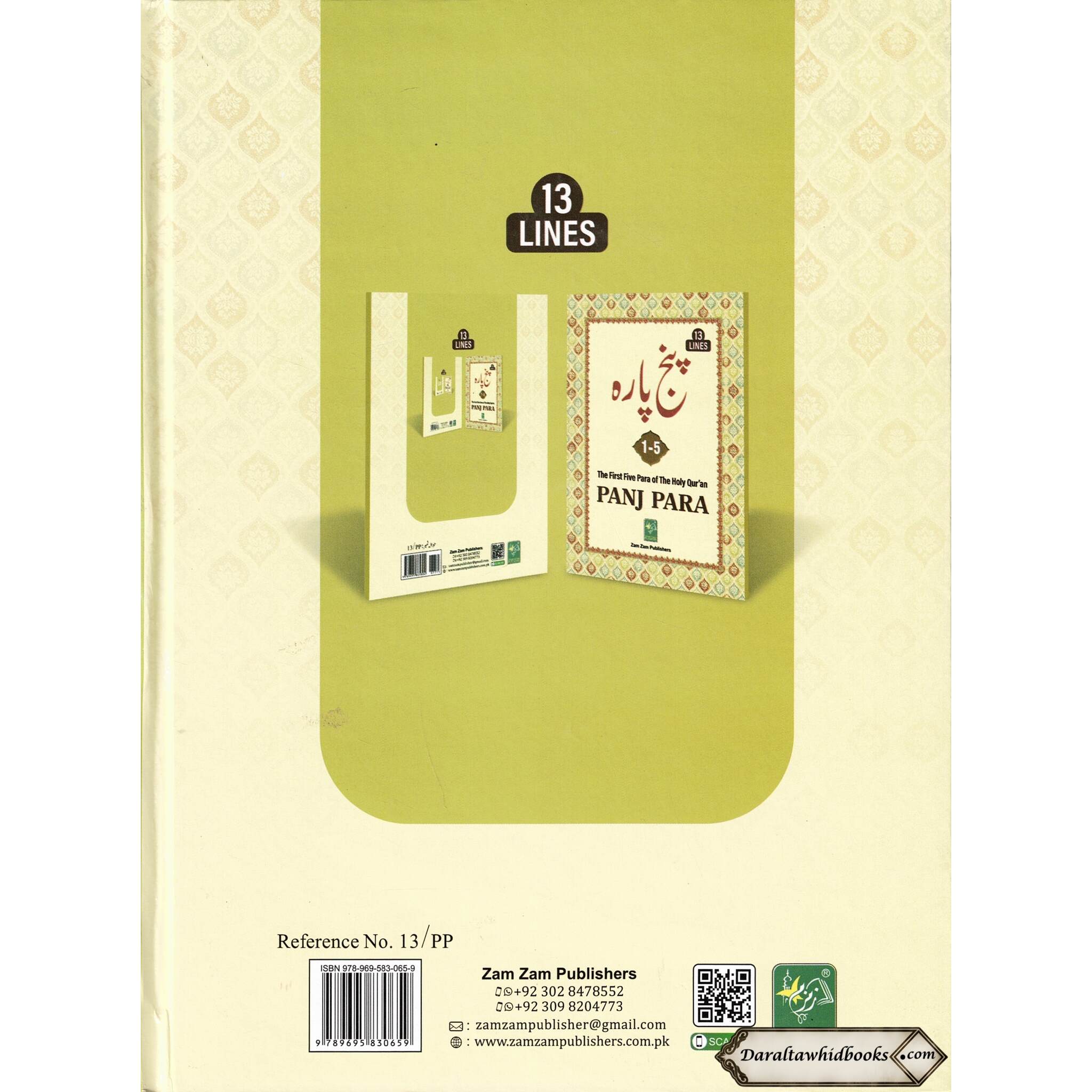Panj Parah 1 - 5 (13 lines) First Five Para of The Holy Quran Ref 13/PP