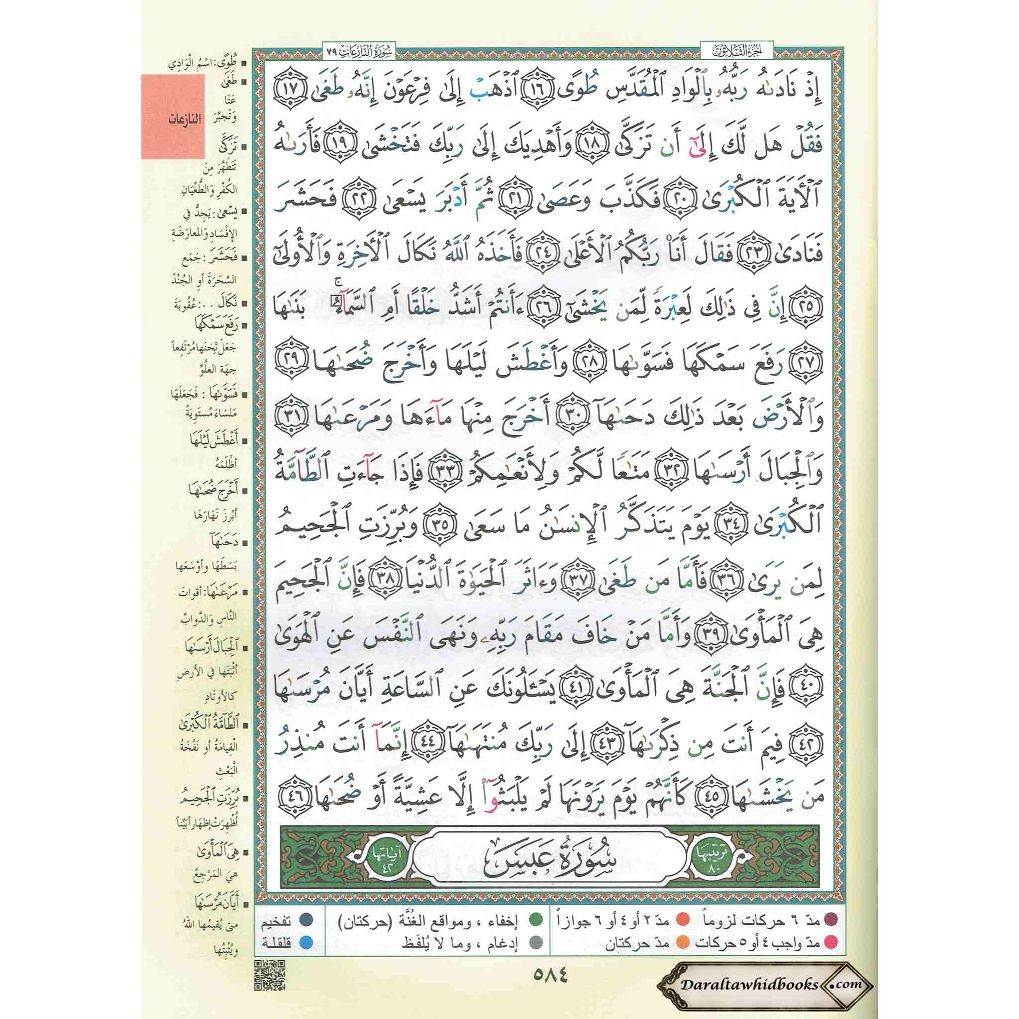Every Arabic letter and phrase has been painstakingly created in the "Tajweed Qur'an" to guarantee accurate pronunciation and recitation. The distinct and unmistakable markings help readers learn the complex rules of Tajweed, improving their ability to recite the Quran beautifully and precisely. Focus on Juz' Amma: The final thirty chapters of the Quran are included in this edition, which is devoted to Juz' Amma. Since these chapters are frequently committed to memory and said throughout daily prayers, it's a great place for anyone wishing to improve their recitation abilities to start.