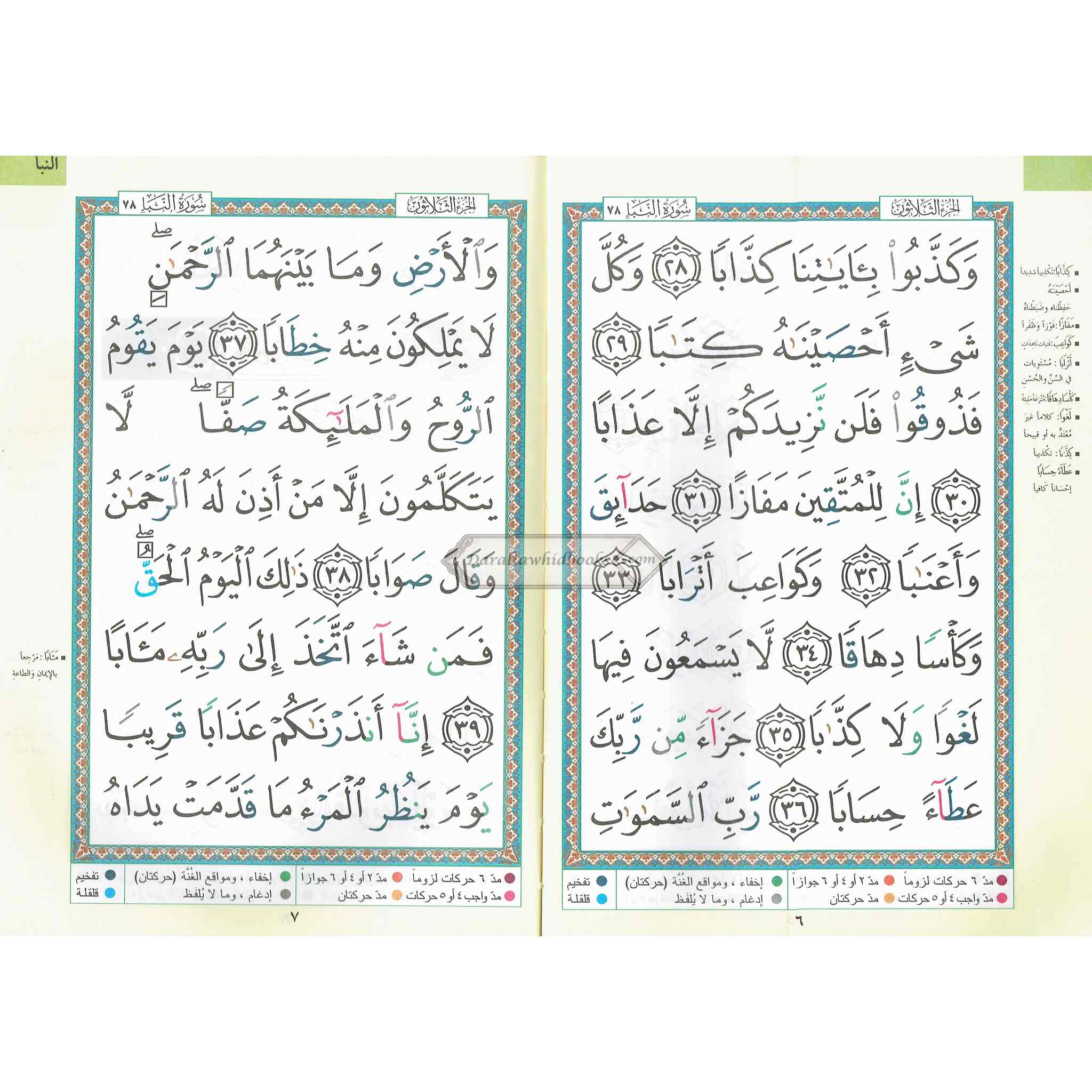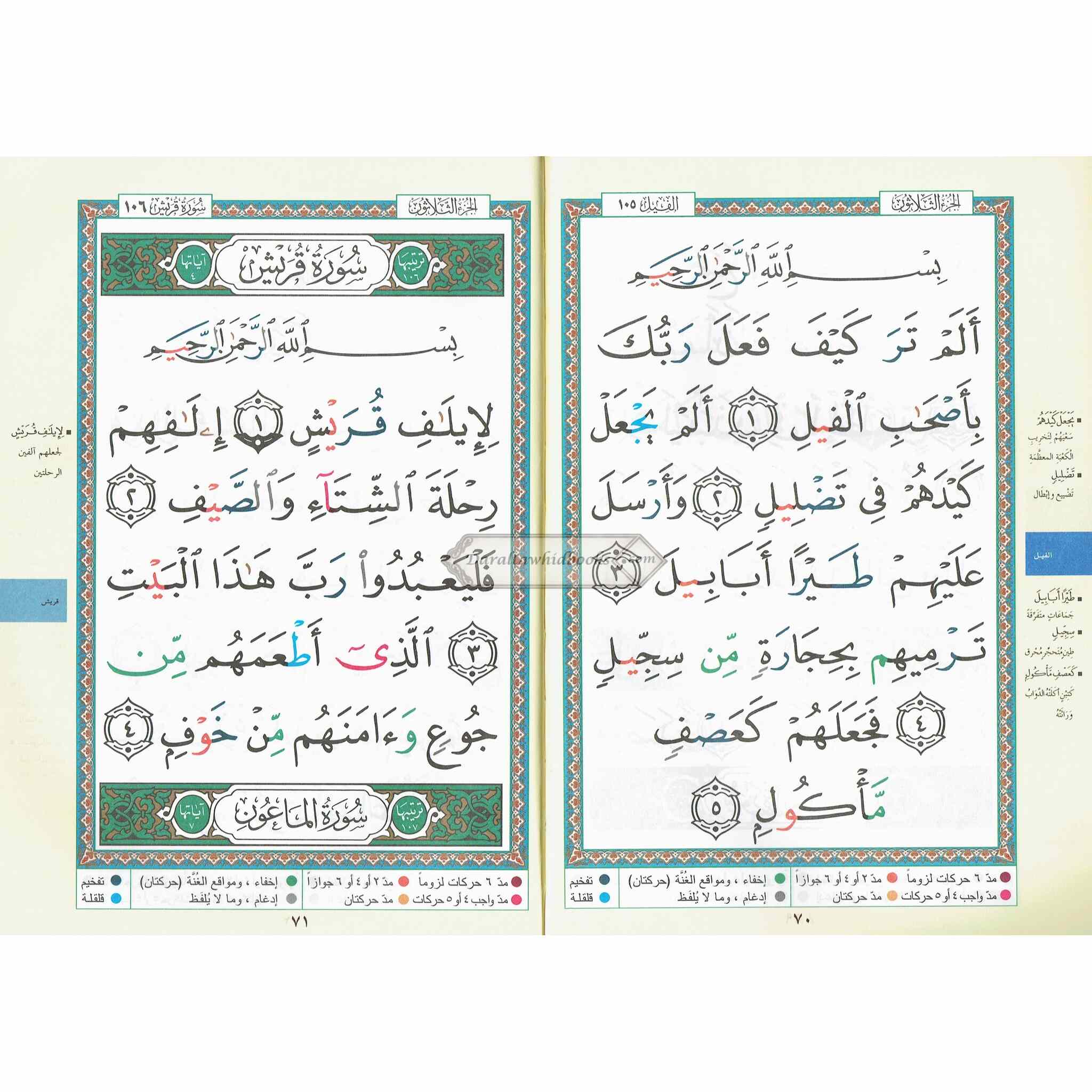 This edition includes the Quran's 30th and final part, known as Juz Amma. Surah Al-Naba, Surah Al-Naziat, and many other chapters are included and are regularly recited in daily prayers and other Islamic rites.