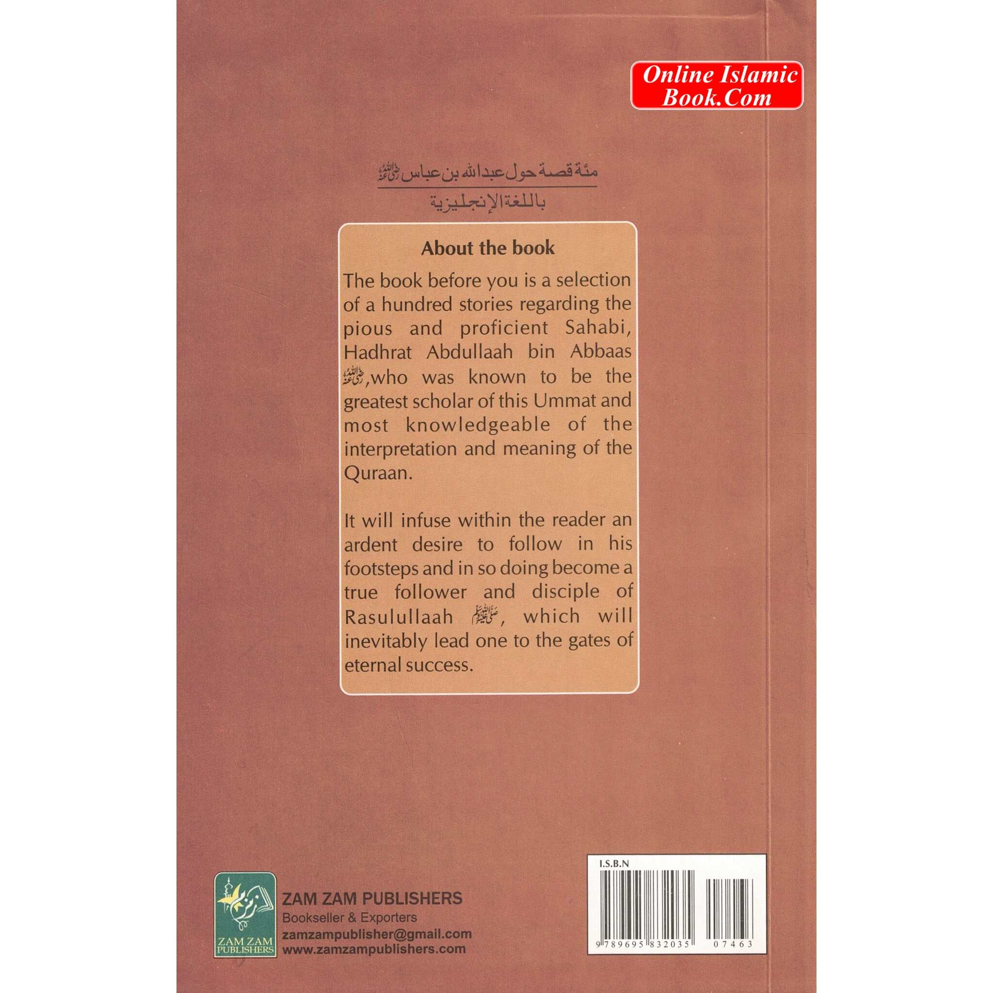 The book before you is a selection of a hundred stories regarding the pious and proficient Sahabi, Hadhrat Abdullaah bin Abbaas who was known to be the greatest scholar of this Ummat and most knowledgeable of the interpretation and meaning of the Quraan. It will infuse within the reader an ardent desire to follow in his footsteps and in so doing become a true follower and disciple of Rasulullaah , which willinevitably lead one to the gates of eternal success.