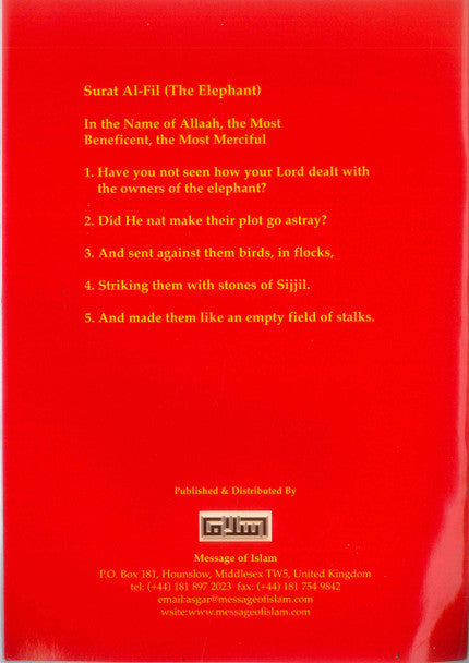 Abraha and His Army of Elephants, a gripping children's book by Shazia Nazlee, tells the remarkable story of the Yemeni monarch Abraha and his bold scheme to destroy the Kaaba in Mecca. This book "Abraha and His Army of Elephants By Shazia Nazlee", which has its roots in the Quranic story of the elephant, teaches kids important lessons about the power of faith and the importance of preserving Islamic holy sites. The narrative opens with the introduction of Yemen's powerful and ambitious ruler, Abraha. He is motivated to build a magnificent cathedral in Sana'a and thinks that by diverting pilgrims from Mecca to his city, he will gain power and status. Abraha sets out for Mecca with a mighty army of elephants. The Meccans are terrified of the elephants because of their size and intimidating presence. However, the Prophet Ibrahim (peace be upon him) sincerely implores Allah for help, pleading for His intervention. Allah responds by sending a flight of birds to attack Abraha's army and bombard them with stones composed of sijjil, a rock famed for its unmatched toughness and ability to pierce even metal. Surat Al-Feel (The Elephant) In the Name of ALLAH, the Most Beneficient, the Most Merciful 1-Have you not seen how your Lord dealt with the owners of the elephant? 2-Did He not make their plot go astray? 3-And sent against them birds, in flocks, 4-Striking them with stones of Sijjill. 5-And made them like an empty field of stalks.